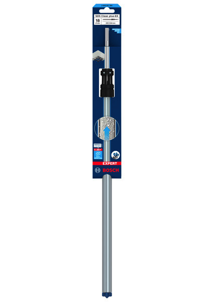 Bohren in Stahlbeton mit verbesserter Staubreduzierung! Durchdringt Stahlbeton mit einem Voll-Carbide-Kopf mit 4 Schneidern Das Bohren präziser Löcher in Beton ist nur ein Schritt bei der Installation chemischer Dübel. Der nächste Schritt besteht in zeitraubenden Reinigungsarbeiten. Mit dem EXPERT SDS Clean plus-8X wird alles anders. Das System bohrt Löcher und entfernt gleichzeitig Staub. Das beschleunigt und vereinfacht die Installation chemischer Dübel. Wir haben EXPERT SDS Clean plus-8X Bohrer für Bauarbeiter und Installateure entwickelt, die Löcher für chemische Dübel bohren müssen. Der Bohrer ist mit einem 4-Schneider-Vollhartmetallkopf und einem robusten Staubsaugerrohr ausgestattet. Das Zubehör wird zusammen mit dem SDS Clean plus Anschluss eingesetzt, der für alle SDS Clean plus-8X Bohrer geeignet und ebenso einfach zu montieren wie abzunehmen ist. Du erhältst also einen leistungsstarken Bohrer, der bei Verstopfung leicht zu reinigen ist (einfach das Absaugrohr vom Bohrer abnehmen) sowie eine neue Technologie zur Staubreduzierung, mit der du Löcher für chemische Dübel schneller vorbereiten kannst. Zudem ist die Luft am Arbeitsplatz sauberer. Hocheffizienter Abtransport von Staub mit Bosch Particle Control