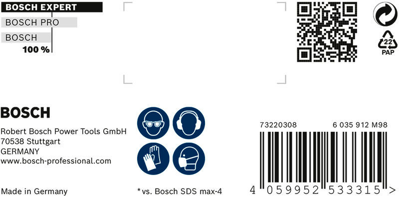 Herausragende Lebensdauer in Stahlbeton! Durchdringt Stahlbeton mit einem Voll-Carbide-Kopf mit 4 Schneidern Das Bohren durch Stahlbeton ist eine schwierige Aufgabe, die den Hammerbohrern viel abverlangt. Sogar 4-Schneider nutzen sich schnell ab. Beim Wechseln des Zubehörs und beim Kaufen von Verbrauchsmaterialien kommt es zu Ausfallzeiten. Der Vollhartmetallkopf auf dem EXPERT SDS max-8X ist ein fortschrittlicher 4-Schneider, der aus einem einzigen Stück des härtesten Metalls besteht: Es verklemmt nicht und zeigt keine Schwäche beim Hammerbohren. Für Bauprofis, die regelmäßig Beton und Stahlbeton bohren, z. B. für schwere Anker oder Armierungsverlängerungen. Der Bosch EXPERT SDS max-8X Hammerbohrer bietet eine unvergleichliche Leistung, Zuverlässigkeit und Langlebigkeit. Es ist das ideale EXPERT Zubehör für SDS max Bohrhämmer. Außergewöhnlich ausdauernder Bohrer mit Bosch Carbide Technology