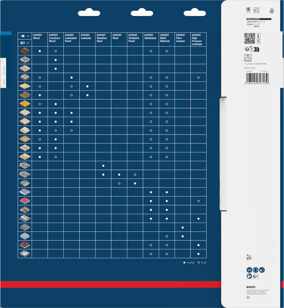 Lange Lebensdauer in Sandwich-Metallplatten! Zusätzliche Beschichtung für mehr Leistung und längere Haltbarkeit Wer auf einer industriellen Baustelle arbeitet, schneidet täglich Sandwich-Metallplatten. Dieser Werkstoff ist die Herausforderung für jedes Sägeblatt und macht Standard-Sägeblätter schnell stumpf. Aber nicht das EXPERT Sandwich Panel Kreissägeblatt. Mit unserem Kreissägeblatt können Sie sehr viele Sandwichplatten sauber schneiden. Die feinen Zähne des EXPERT Sandwich Panel sind scharf geschliffen und wurden mit der Bosch Carbide Technology hergestellt. Dadurch ist es sehr langlebig und ermöglicht saubere, präzise Schnitte. Zum Schutz vor Wärmestau und Korrosion haben wir es mit einer zusätzlichen Beschichtung versehen. Außergewöhnlich robust dank Bosch Carbide Technology