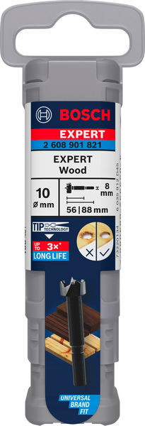 Überragende Lebensdauer in Holz! Gewellter Schneidrand für sauberen Schnitt und geringere Wärmeentwicklung Mit einem Forstnerbohrer lassen sich problemlos größere Löcher in Holz bohren, aber nicht mit jedem Forstnerbohrer erhält man auch saubere Löcher mit glattem Rand. Mit dem EXPERT Wood ist gewährleistet, dass du absolut genaue, ausrissfreie Sacklöcher in allen Holzartenerhälst. Ob saubere, splitterfreie Sacklöcher für Türscharniere, Senkbohrungen oder andere Arten von Bohrungen in Holz, mit dem EXPERT Wood Forstnerbohrer schaffst du jede Arbeit mit Leichtigkeit. Die scharfe, gewellte Schnittkante wurde mit der Bosch Tip Technology entwickelt und schafft ein effektives und langlebiges Werkzeug für die Bearbeitung von Hart- und Weichholz. Dauerhaft Spitzenleistung mit Bosch Tip Technology