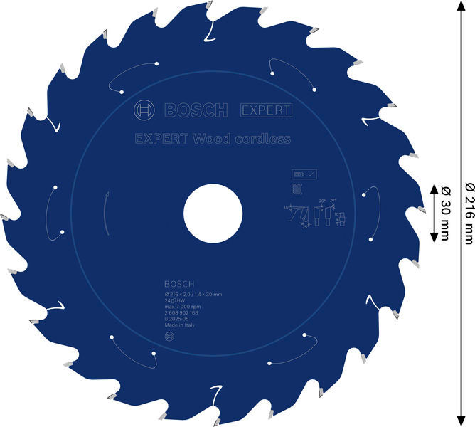 EXPERT Wood Kreissägeblatt, 216x1,7x30 mm, Z24, Zahnwinkel 25°