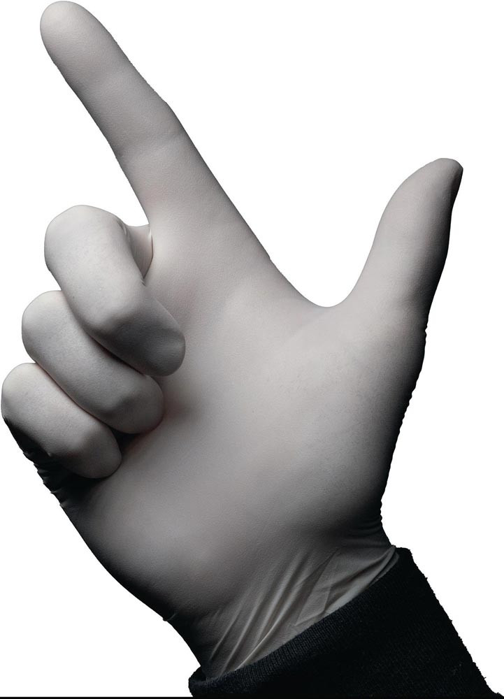 nach EN 374 Typ B · EN 455 · EN 420 · Kat. III, MPG Kl. I · AQL 1,5 · Einweghandschuhe, rechts und links passend · Material: Latex · puderfrei · Materialstärke: ca. 0,1 mm · angeraute Oberfläche · nicht steril · Box à 100 St. · Anwendung: Haushalt, Küche, einfache Hygienebereiche, Pflege, Reinigungsarbeiten