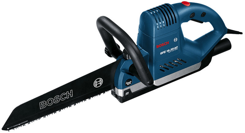 Elektrofuchsschwanz GFZ 16-35 AC, Der GFZ 16-35 AC Professional Elektrofuchsschwanz ist die Allroundlösung für zuverlässige Leistung in einer Vielzahl von Anwendungen. Seine verschiedenen Sägeblätter ermöglichen vielseitige Anwendungen und können für zahlreiche Materialien angepasst werden. Die konstante Drehzahl der Säge mit stufenloser Drehzahlvorwahl sorgt für konstanten Arbeitsfortschritt auch unter Last. Darüberhinaus ergibt sich durch den werkzeuglosen Wechsel der Sägeblätter eine einfache Handhabung. Dieses Elektrowerkzeug ist zum Sägen von Holz, Gipskarton, Gasbeton und Kunststoff bestimmt. Es ist kompatibel mit dem Bosch Click & Clean Staubabsaugsystem. Der GFZ 16-35 AC verfügt über einen einstellbaren Haltegriff. Absaugadapter (ET-Nr. 3 602 317 017). 2 x Sägeblatt TF 350 NHM für Universalsäge für Porenbeton (2 608 632 123). 2 x Sägeblatt TF 350 M für Universalsäge für Holz + Kunststoff (2 608 632 120). Schneider (ET-Nr. 2 608 045 017)