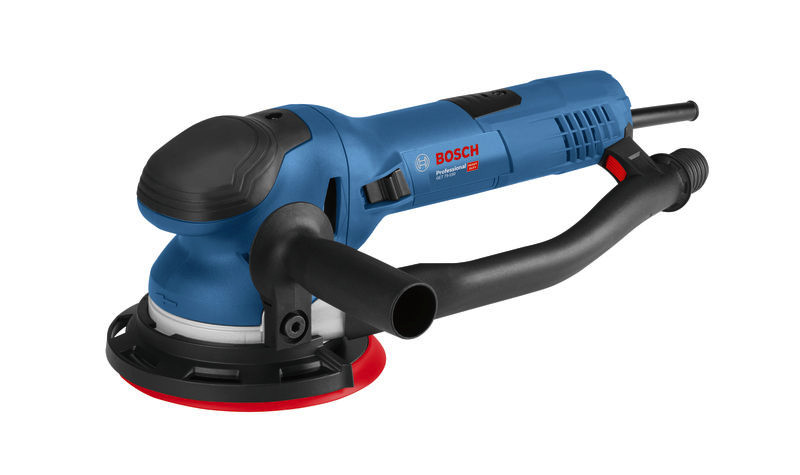 Exzenterschleifer GET 75-150, Der GET 75-150 Professional ist der kabelgebundene (150 mm) Exzenterschleifer mit Direktantriebsmodus von Bosch mit herausragender Werkzeugkontrolle und Handhabung. Er ist mit einer perfekt geformten ergonomischen Handauflage und einem Handgriff mit nur 18 cm Griffumfang für die optimale Werkzeugkontrolle ausgestattet. Dank des Multiloch-Schleiftellers können alle Schleifblätter unabhängig vom Lochraster problemlos verwendet werden und die Staubabsaugung ist deutlich stärker. Das Gerät verfügt über einen extrem leistungsstarken 750-Watt-Motor mit Tellerrotation im Direktantriebsmodus für bis zu 45 % mehr Abtragsleistung. Dieser kabelgebundene Schleifer ist für den Grundschliff, den Zwischenschliff, den Lackabtrag, die Endbearbeitung und das Polieren von Oberflächen vorgesehen. Er ist einsetzbar bei Holz, Furnier, Lack, Füllstoffen, Mineralstoffen und Acryl. Es ist kompatibel mit dem Bosch Click & Clean Staubabsaugsystem. Der GET 75-150 verfügt auch über eine konstante Drehzahl, einen Direktantriebsmodus, einen Kantenschutz, einen 150-mm-Schleifteller mit Klettverschluss zur Schleifblattbefestigung und Drehzahlvorwahl. Schleifteller (150 mm) (2 608 900 007). L-BOXX 238 (1 600 A01 2G2). 1 x Schleifblatt M480, Best for Wood and Paint, 80 (separat erhältlich als 5er-Pack: 2 608 621 162). 1 x Schleifblatt M480, Best for Wood and Paint, 120 (separat erhältlich als 5er-Pack: 2 608 621 164). 1 x Schleifblatt M480, Best for Wood and Paint, 180 (separat erhältlich als 5er-Pack: 2 608 621 166). Schutzring für 150 mm (2 607 017 497). Zusatzhandgriff inkl. Schraube (2 607 017 500). Ausblasrohr für 150 mm (2 607 017 499). Innensechskantschlüssel