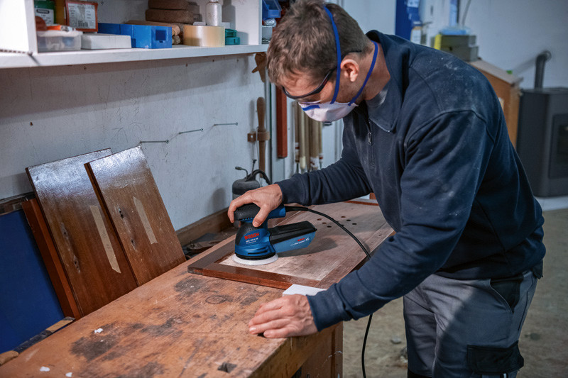 Exzenterschleifer GEX 125-1 AE, Der GEX 125-1 AE Professional ist Boschs kabelgebundener Einsteiger-Exzenterschleifer in der 125-mm-Kategorie. Er wurde extra für kleine Flächen und kleinere Reparaturarbeiten konstruiert. Sein kompaktes und ergonomisches Design mit variablen Griffpositionen bietet hervorragenden Komfort auch bei Arbeiten über Kopf. Die Drehzahlvorwahl ermöglicht eine Verwendung für verschiedenste Materialien. Die Staubbox umfasst ein integriertes Bosch Microfilter-System für eine effiziente Staubabsaugung und nahezu staubfreies Arbeiten. Dieser Exzenterschleifer eignet sich zum Schleifen und Zwischenschleifen, Lackentfernen und Feinschleifen auf verschiedensten Materialien. Er ist einsetzbar auf Holz, Furnier, Lack, Füllmasse sowie Mineral- und Acryloberflächen. Das Gerät ist mit dem Bosch Click & Clean System kompatibel. Der GEX 125-1 AE Professional ist außerdem mit einem 125-mm-Schleifteller mit Klettsystem zur Schleifpapierbefestigung ausgestattet. Handwerkerkoffer. Microfilter Box. 3 x Schleifblatt C470, Best for Wood + Paint, 80 (separat erhältlich als 5er-Pack: 2 608 605 069)