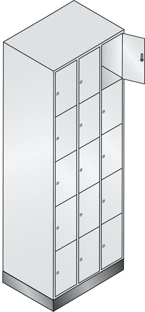 Fächerschrank, 3x5 Fächer, Fachbreite innen 190 mm, BxTxH 680x480x1950 mm, RAL 7035