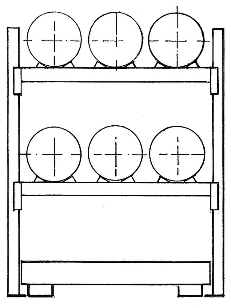 ∙ Standard-Fassauflagen gehören, entsprechend der Tabelle, für liegende Fässer zum Lieferumfang