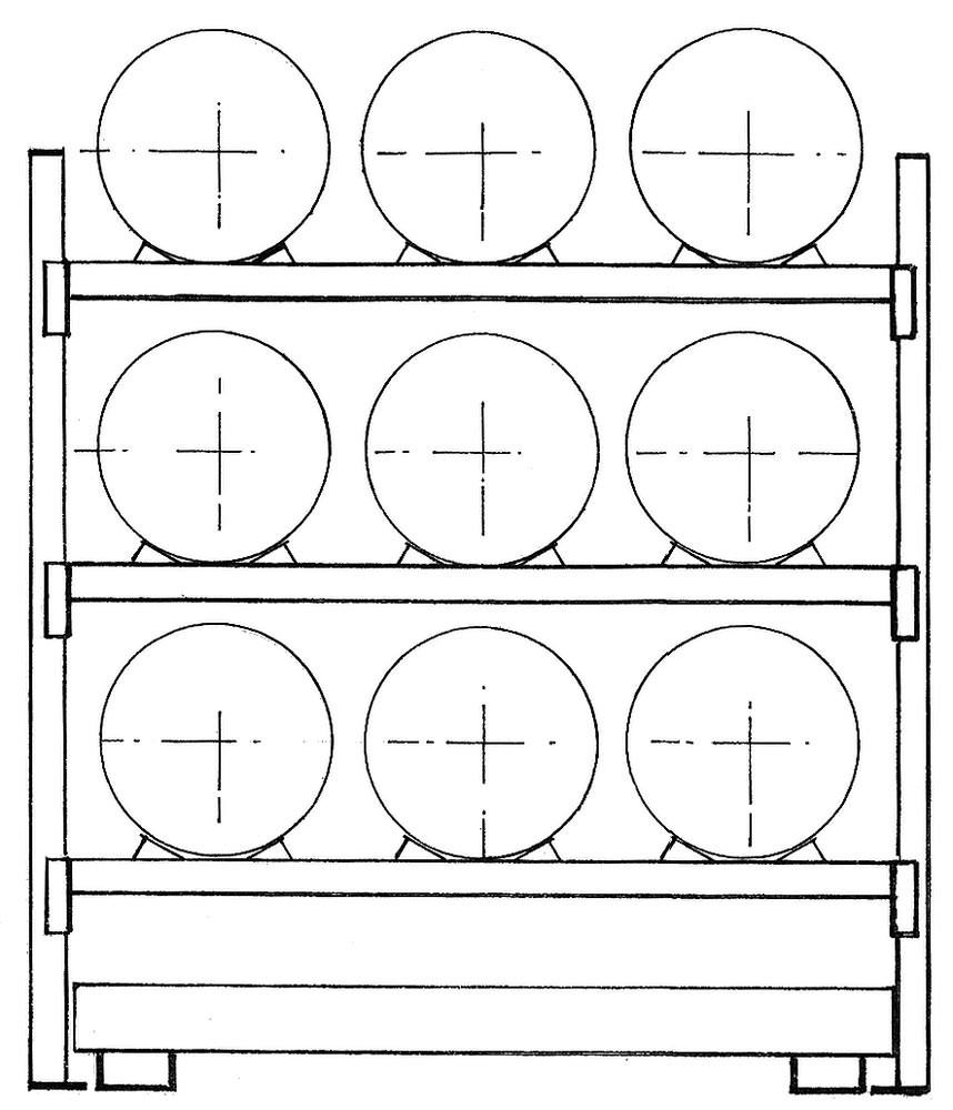 ∙ Standard-Fassauflagen gehören, entsprechend der Tabelle, für liegende Fässer zum Lieferumfang