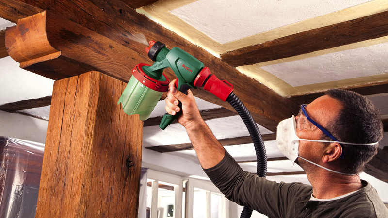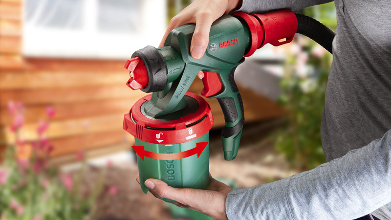 Systemzubehör Feinsprühpistole für alle Farbarten. Schnelles Sprühen, perfekte Ergebnisse. ALLPaint-Sprühsystem: ein Werkzeug für alle Farbsorten. SDS für einfaches, schnelles Nachfüllen von Farbe und eine einfache Reinigung. Enthält einen großen 1.000-ml-Behälter für selteneres Nachfüllen bei der Arbeit. ConstantFeed sorgt für gleichmäßige Schichten, sogar über Kopf oder in Bodennähe. Lieferung mit drei Düsen zum Sprühen von Innenwandfarben, Lacken und Lasuren. Für die Verwendung mit den Farbsprühsystemen PFS 3000-2 und PFS 5000. Karton