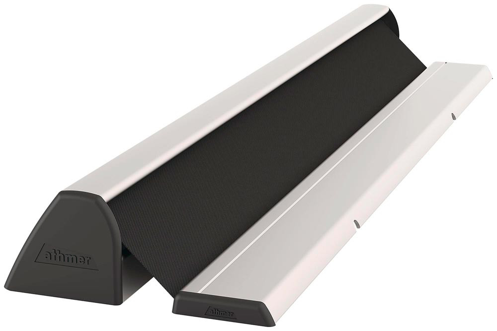 selbsttätig auf konstante Spannung ziehendes Schutzrollo · Klick-System mit verdeckter Verschraubung · Profil: Aluminium · Abdeckung: Kunstfaser · für Rauch-und Brandschutztüren geeignet · abwaschbar · wartungsfrei · Inklusive passendem Befestigungsmaterial für Holz und Metalltüren