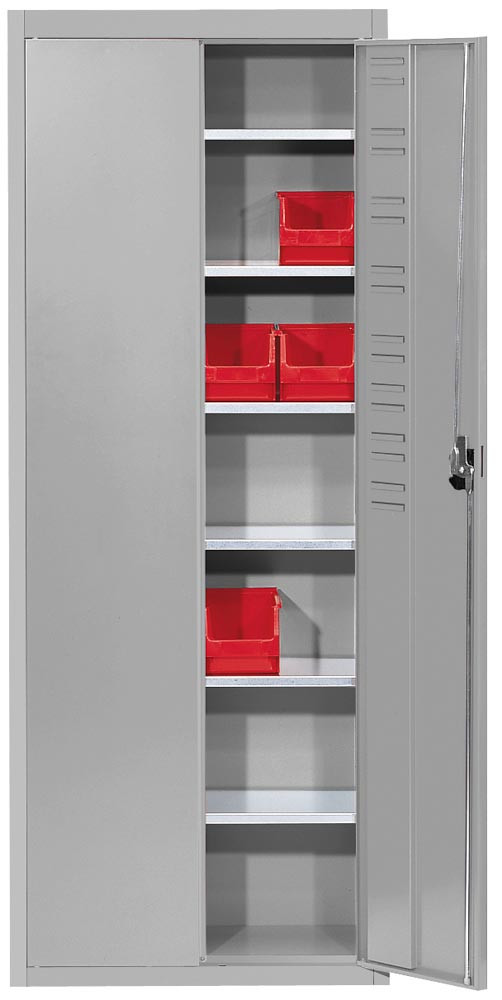 Flügeltürenschrank, BxTxH 680x280x1740 mm, RAL 7035 lichtgrau, Fachlast 50 kg E6043816