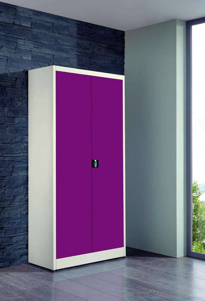 Flügeltürenschrank, BxTxH 950x420x1950 mm, 4 lack. Böden, 65 kg Traglast/Boden, reinweiß/bordeauxviolett E6011521