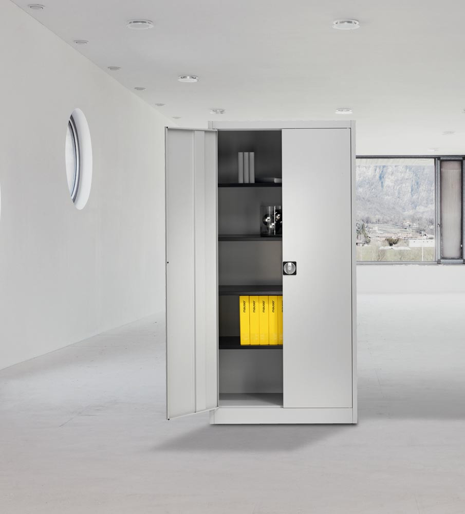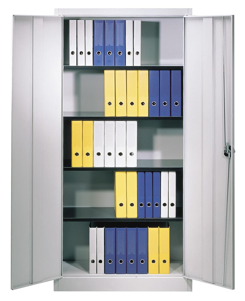 Flügeltürenschrank, BxTxH 950x420x1950 mm, 4 lack. Böden, 65 kg Traglast/Boden, RAL 7035 lichtgrau E873775