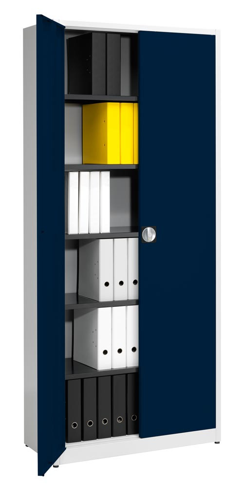 Flügeltürenschrank, BxTxH 950x420x1950 mm, 4 lack. Böden, 65 kg Traglast/Boden, lichtgrau/saphirblau E6011520