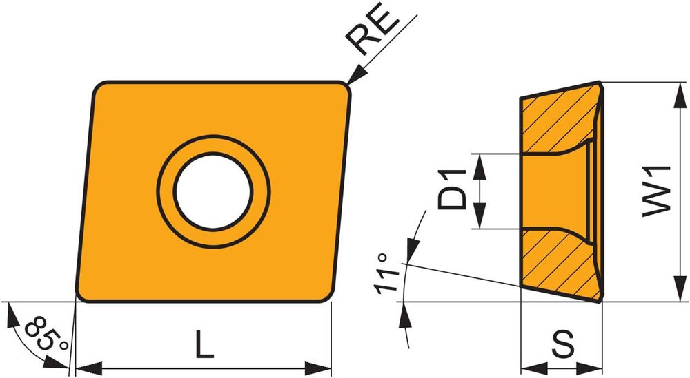 · Formcode Wendeschneidplatte: A - Parallelogramm 85° eingeschlossener Winkel