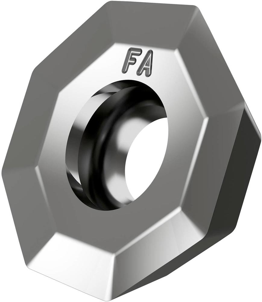 Einseitige Fräswendeschneidplatte OEHT 0604 mit Spanbrecher · Oktagonal für eine maximale Schnitttiefe von 3.3mm · mit eine Indexierungsgenauigkeit gemäß ISO-Toleranzklasse-H und FA Geometrie mit scharfer Schneidkante · M0315 PVD Beschichtung WC-Co Feinkornsubstrat in der ISO-Gruppe N05 -N25 zum bearbeiten von Nichteisenmetallen mit Planfräsern SOE06Z