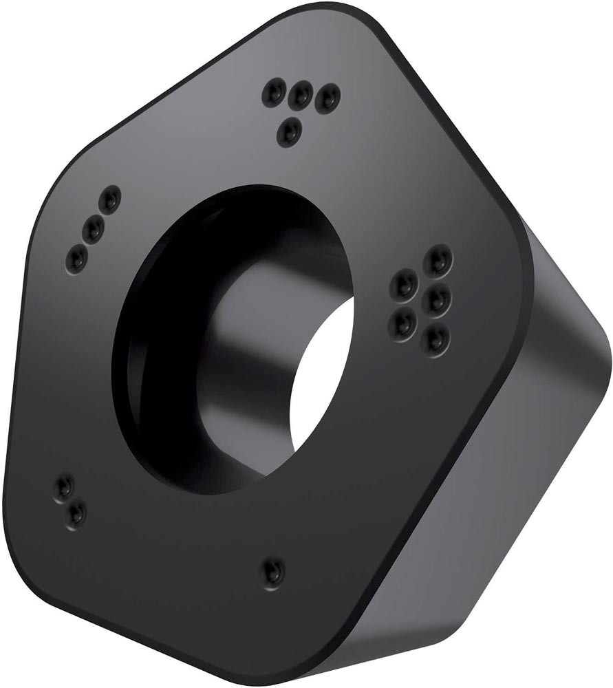 Einseitige Fräswendeschneidplatte PDMW 0905 mit einem ebenen Spanwinkel · Pentagonal für eine maximale Schnitttiefe von 2.0mm · mit 3.0mm Eckenradius · eine Indexierungsgenauigkeit gemäß ISO-Toleranzklasse-M mit verrundeter und facettierter Schneidkante · M9325 MT-CVD Beshcichtung WC-Co Substrat in der ISO-Gruppe K10 -K30 zum bearbeiten von Gusseisen mit Hochvorschubfräsern SPD09