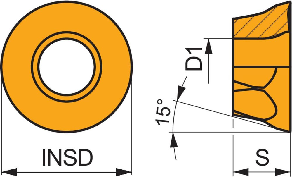 Fräswendeschneidplatte ISO RDGT 120500SN-FM:M8330 Bohrungs-D. 5,5mm PVD beschichtet Farbe Gold E6506477