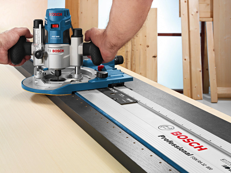 Systemzubehör FSN RA 32 800, Die 800-mm-Führungsschiene FSN RA 32 800 Professional ermöglicht genaue Lochraster beim Möbelbau. Sie bietet zusätzlich zu ihrer Standardfunktion höchste Funktionalität dank ihres 32-mm-Lochrastersystems. Die qualitativ hochwertige Führungsschiene ermöglicht eine präzise Führung und ist perfekt kompatibel mit allen zugehörigen Elektrowerkzeugen. Dank der leicht austauschbaren, rutschfesten Gummistreifen und des Splitterschutzes bietet sie absolute Kontrolle während der Verwendung und sorgt für eine saubere Schnittkante. Diese Führungsschiene eignet sich für geführtes Schneiden und Fräsen bei Anwendungen mit 32 mm Lochabstand im Lochraster. Das Gerät ist mit allen Bosch Professional GKS G Kreissägemodellen und GKT Professional Tauchsägen sowie bestimmten GST Professional Stichsägen und GOF Professional Fräsen mit einem Adapter kompatibel. Die 800-mm-Führungsschiene FSN RA 32 800 Professional besitzt einen Lochabstand von 32 mm im Lochraster und eine Kunststoffkappe zur Werkzeugfixierung.