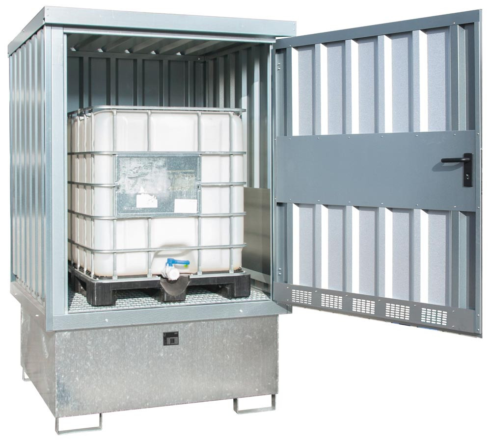 Gefahrstoff-Depot für 1x1000 l IBC, BxTxH 1535x1590x2470 mm, Auffangvol. 1060 l, verzinkt