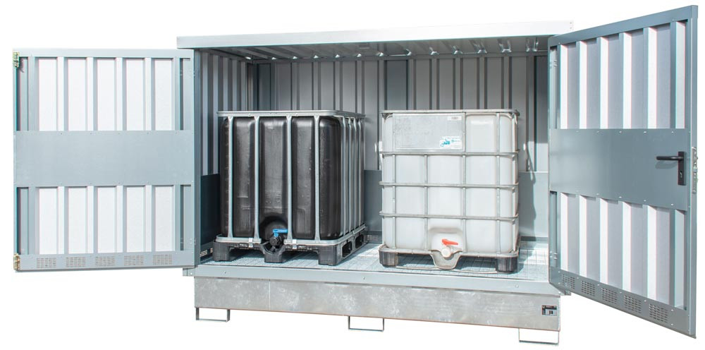Gefahrstoff-Depot für 2x1000 l IBC, BxTxH 2835x1595x2180 mm, Auffangvol. 1000 l, verzinkt