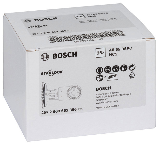 Das Tauchsägeblatt Starlock AII 65 BSPC ermöglicht breite und saubere Schnitte in Hartholz.? Seine dreidimensionale japanische Zahnanordnung besteht aus scharfgeschliffenen Zähnen, die ideal für das Sägen von Hartholz geeignet sind. Diese Zahnanordnung minimiert die Wärmeentwicklung und ermöglicht ausrissfreie Schnitte ohne Auszackung oder Hitzespuren. Die flache Blattgestaltung reduziert Lateralschwingung und ermöglicht mittels direkter Kraftübertragung präzise Schnitte. Dieses Produkt wird verwendet für das Tauchsägen in Hartholz oder Holzbrettern sowie das Sägen von Holzpaneelen. Die abgerundete Blattspitze (Curved-Tec) ermöglicht präzise und glatte Tauchschnitte. Das Starlock-Aufnahmesystem ermöglicht ?einen schnellen Blattwechsel ohne Blattberührung in drei Sekunden.? Das Aufnahmesystem ermöglicht durch seine dreidimensionale enge Passung maximale Kraftübertragung zwischen Maschine und Zubehör.
