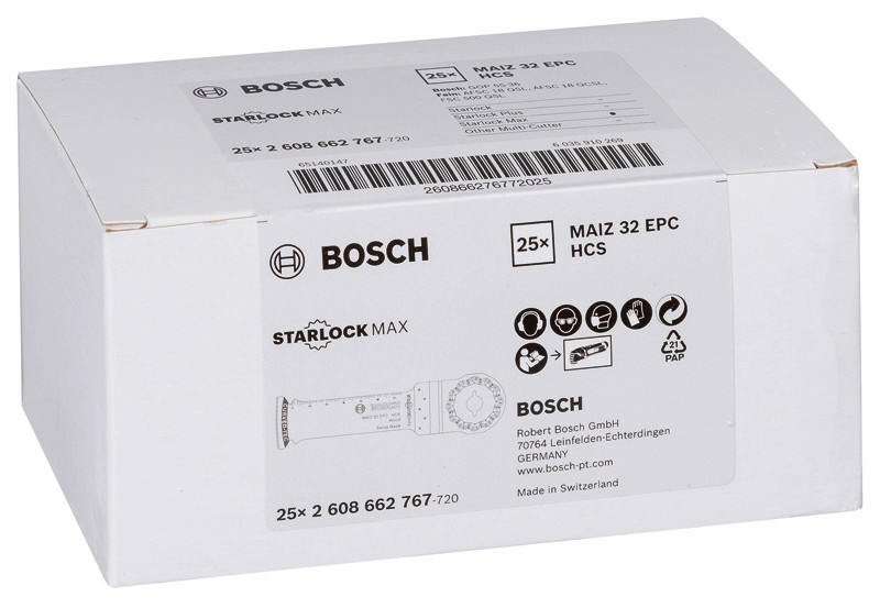 Das Tauchsägeblatt Starlock MAIZ 32 EPC ermöglicht besonders tiefe Schnitte in Holz.? Seine Länge von 80 mm erhöht die Reichweite für ausgedehnte Schnitte. Die direkte Kraftübertragung und das robuste Starlock-Aufnahmesystem reduzieren Lateralschwingung und ermöglichen längere präzise Schnitte. Mit diesen robusten Merkmalen ist dieses Produkt ideal geeignet für tiefe Tauchschnitte in Holz und Holzbalken sowie zum Anfertigungen von Aussparungen für Zapfen und Verbindungen. Das Blatt durchschneidet auch massives Weichholz. Eine abgerundete Blattspitze (Curved-Tec) ermöglicht präzise und glatte Tauchschnitte. Das System Starlock Max ermöglicht selbst bei härtestem Einsatz maximale Schnitttiefe, Geschwindigkeit und Vielseitigkeit. Zusätzlich ermöglicht das Starlock-Aufnahmesystem schnellen Blattwechsel ?in drei Sekunden ohne Blattberührung?. Das spezielle Starlock-Aufnahmesystem ermöglicht durch seine dreidimensionale enge Passung maximale Kraftübertragung zwischen Maschine und Zubehör.