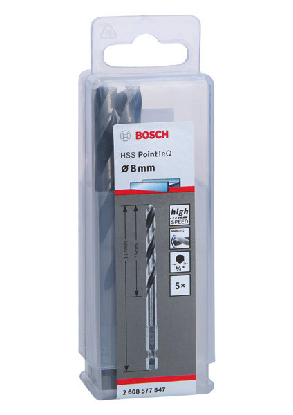 HSS PointTeQ Sechskantbohrer 8,0 mm, 5-tlg.