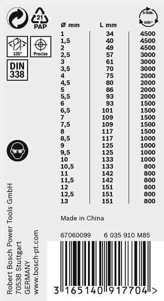 Der HSS-Spiralbohrer PointTeQ ermöglicht schnelles Bohren in Metall aufgrund des PointTeQ-Designs an der Bohrspitze. Schnelles und einfaches Anbohren wird möglich, da die selbstzentrierende Spitze Wandern verhindert. Aufgrund der erhöhten Bohrrate fällt weniger Wärme und Verschleiß an. Das PointTeQ-Design an der Bohrspitze bleibt scharf und hält Dauereinsatz stand. Dieser Bohrer eignet sich zum Bohren von Durchgangs- und Zentrierlöchern in legierten und unlegierten Stahl, in Nichteisenmetalle, Gussstahl, Gusseisen und Kunststoff. Das Bruchrisiko ist insbesondere bei Bohrern mit einem Durchmesser unter 6 mm gering, da der Schaft hochelastisch ist. Die mit Schwarzoxid beschichtete Nut ermöglicht eine schnelle Entfernung der Späne. Der HSS-Spiralbohrer PointTeQ entspricht DIN 338. Der Bohrertyp ist N (kleiner Seitenspanwinkel) mit einem Spitzenwinkel von 135 Grad.