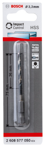 HSS Spiralbohrer mit Sechskantschaft 3,3 mm