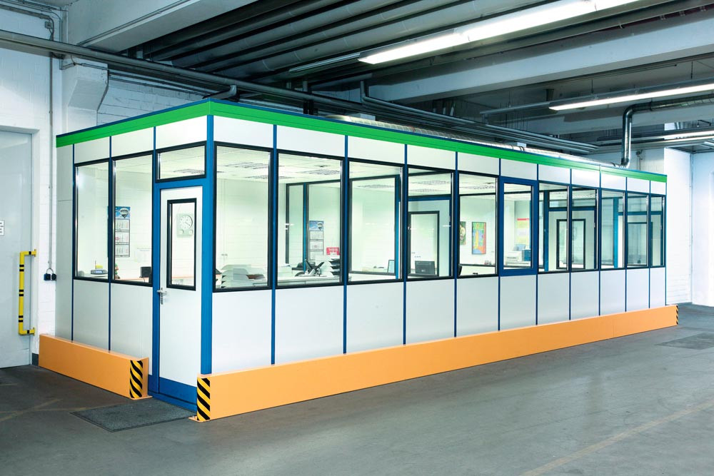 ∙ Das variable Modulsystem zur vielseitigen Raumplanung ∙ Auf der Basis einzelner Elemente können Mehrzweckräume ebenerdig oder auf Podesten auch mehrgeschossig konzipiert und je nach Änderung der Rahmenbedingungen beliebig erweitert und umgebaut werden ∙ Einfache Montage durch Steck- und Schraubverbindungen ∙ Raumabmessungen werden entsprechend den Bestimmungen der Arbeitsstättenverordnung eingehalten