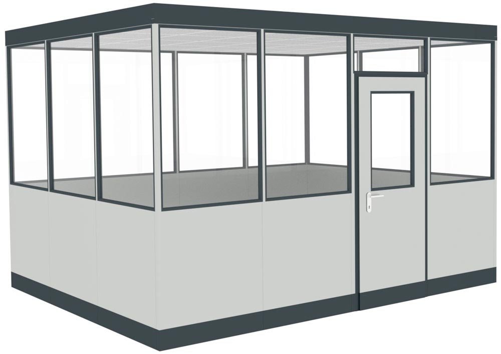 Hallenbüro, 4-seit. freistehend, ohne Boden, 2 Leuchten, BxTxH 3045x3045x2630 mm, RAL 9002 grauweiß, Rahmen RAL 5010 enzianblau