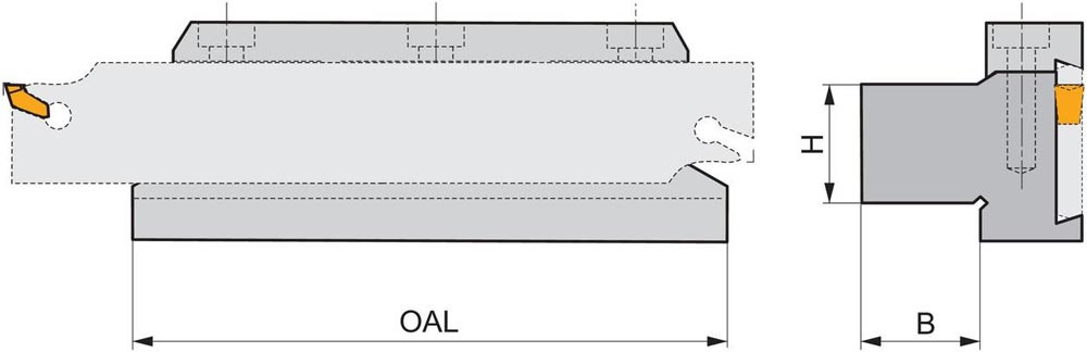 32-DU 2523 ist ein Werkzeughalter zur Aufnahme von Schneiden zum Ein- und Abstechen. Körper für längere Standzeit oberflächenbehandelt.