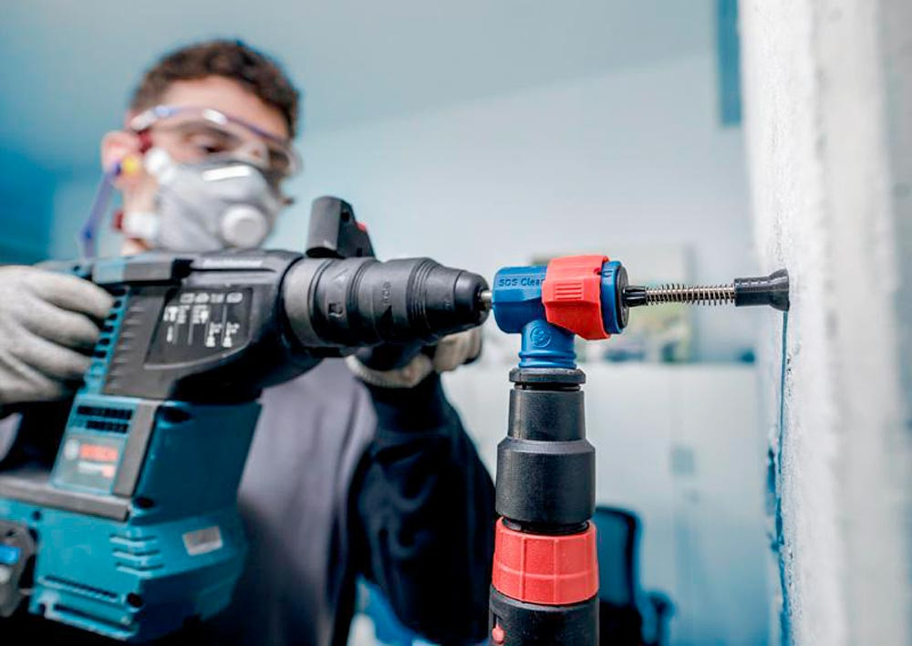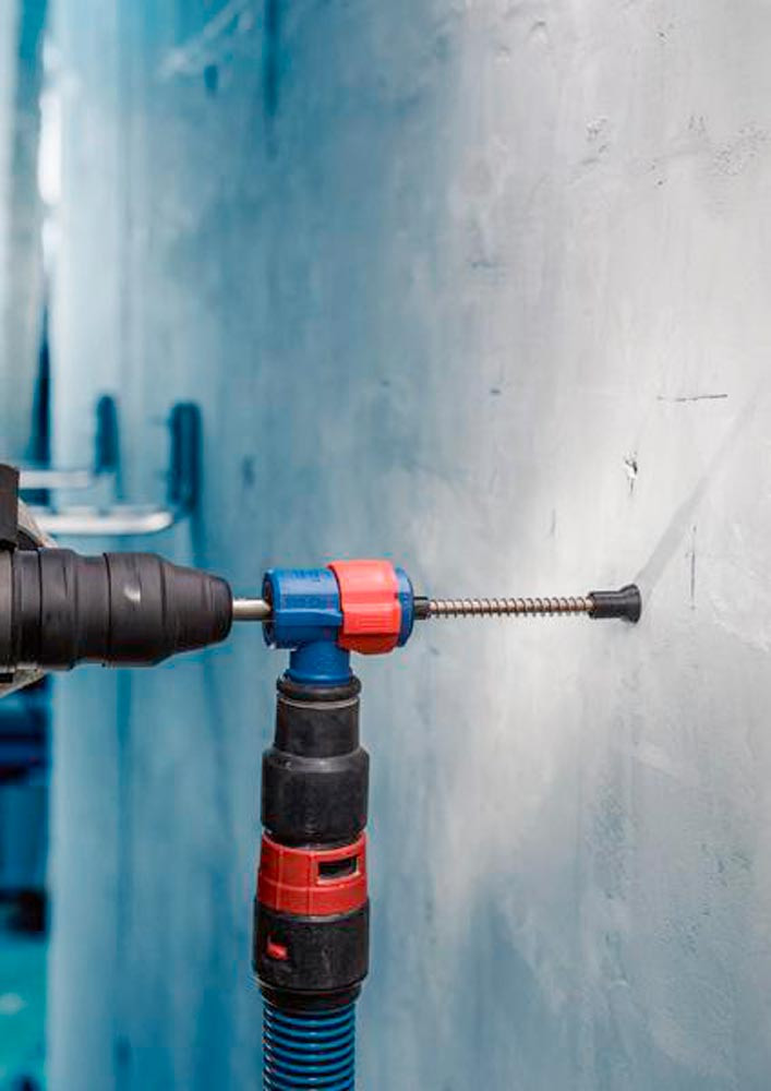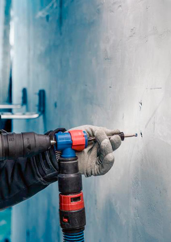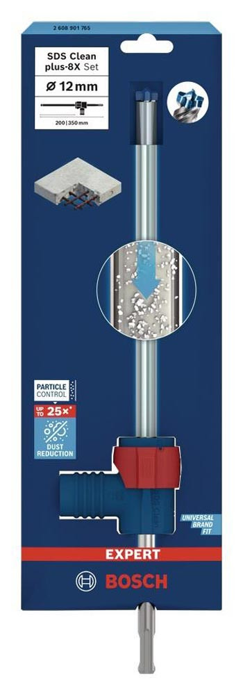 Bohren in Stahlbeton mit verbesserter Staubreduzierung! Durchdringt Stahlbeton mit einem Voll-Carbide-Kopf mit 4 Schneidern Installateure und Bauarbeiter wissen nur zu gut · dass beim Bohren in Beton große Mengen an Staub anfallen. Besonders unangenehm ist dies beim Bohren über Kopf oder beim Bohren und Reinigen für chemische oder mechanische Dübel. Für diese anspruchsvollen Arbeiten haben wir das EXPERT SDS Clean plus-8X Set entwickelt. Mit diesem Set bohrst und entfernst du gleichzeitig Staub und Bohrmehl · sodass mühsame Reinigungsarbeiten entfallen. Mit EXPERT SDS Clean plus-8X Set wird der Staub beseitigt · wenn du über Kopf oder eine ganze Reihe von Löchern für mechanische oder chemische Dübel bohren musst. Der Bohrer ist mit einem Vollhartmetallkopf mit 4 Schneiden und innenliegendem Absaugkanal ausgestattet. Zudem haben wir den SDS Clean plus Anschluss verbaut · der für alle SDS Clean plus-8X Bohrer geeignet ist und sich leicht montieren und abnehmen lässt. Er verbindet die Bohrmaschine mit Staubabsaugungen · sodass Staub und kleines Bohrgut durch den integrierten Absaugkanal aus dem Bohrloch extrahiert werden kann. Die vormontierte Staubkappe unterstützt das Auffangen von Schmutz und Staub · sobald du mit dem Bohren beginnst. Hocheffizienter Abtransport von Staub mit Bosch Particle Control