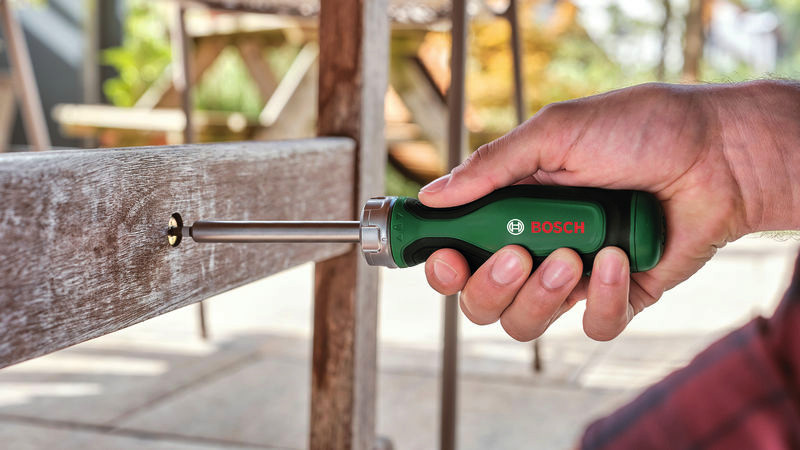 Handwerkzeuge Bit-Ratschenschraubendreher + 12 Bits. Ratschenschraubendreher mit hohem Drehmoment für effizientes Schrauben. Ratschenfunktion mit Zahnkranz (36 Zähne) für ein Drehmoment bis 50 Nm. Stabiles Schrauben mit 80-mm-Schaft und magnetischem Bithalter. Ergonomisches Design und Softgrip für volle Kontrolle und optimale Kraftanwendung. Intuitiv bedienbarer Metallring für die Positionierung links und rechts sowie mittlere Einstellung für manuelles Schrauben. Aufklappbares Magazin mit 12 farbcodierten Bits aus S2-Stahl in verschiedenen Größen. 12 x Bit 25 mm (PH1/2, PZ1/2/3, SL4/5/6, TX20/25, HEX4/5)