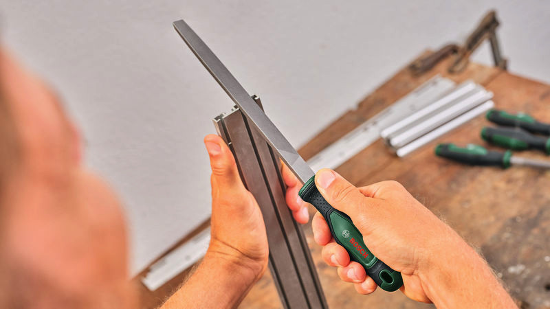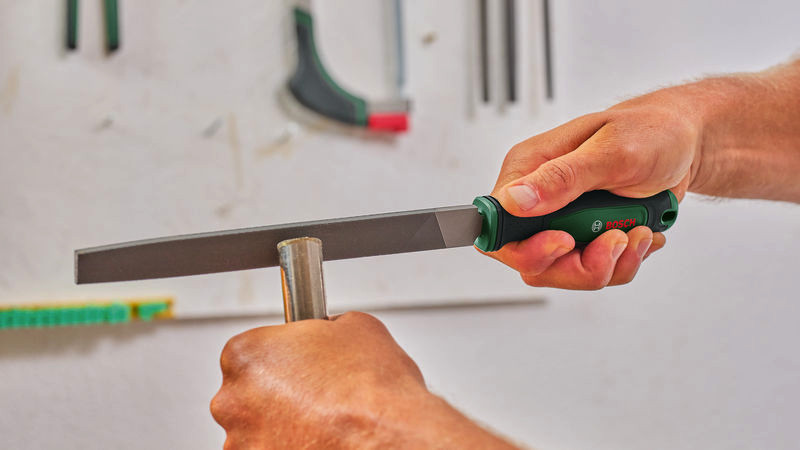 Handwerkzeuge Feilen-Set 200 mm, 5-teilig. Überragendes Feilen-Set zum effizienten Entgraten von Metall. 5-teiliges Feilen-Set: Flach-, Halbrund, Rund-, Vierkant- und Dreikant-Stahlfeilen. Effizientes Feilen von Metall durch Halbschlicht-Feilen Hieb 2. Robuste Feilen aus hochwertigem, hartem Kohlenstoffstahl. Optimale Kraft, spürbare Kontrolle durch ergonomische Softgrip-Hefte mit Daumenvertiefung. Praktische Aufhängevorrichtung für einfache Aufbewahrung der Feile. 1 x Flachfeile Stahl 200 mm. 1 x Halbrundfeile Stahl 200 mm. 1 x Rundfeile Stahl 200 mm. 1 x Vierkantfeile Stahl 200 mm. 1 x Dreieckfeile Stahl 200 mm