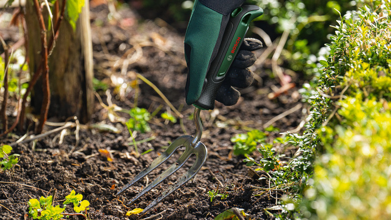 Handwerkzeuge Handgabel. Kompaktes, komfortables Design für alltägliche Gartenarbeit. Das Gartengerät der Wahl: die unentbehrliche Handgabel. Kompaktes Design für eine unproblematische Aufbewahrung. Bequeme Verwendung dank ergonomischem Design. Ideal zum Graben von Löchern, Umgraben und Stabilisieren junger Pflanzen