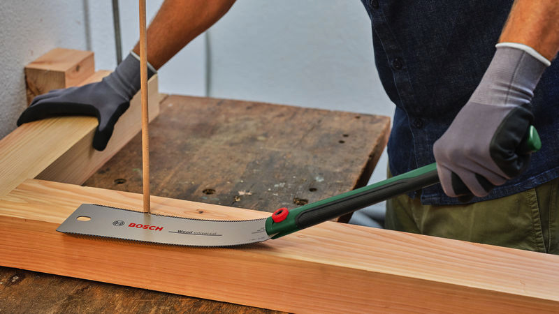 Handwerkzeuge Japansäge Ryoba 250 mm. Zugsäge Ryoba im japanischen Stil, doppelseitige Säge für vielseitige Schnitte mit weniger Kraftaufwand. Zugsäge für sauberere, präzisere Schnitte mit weniger Kraftaufwand in Holz und Kunststoff. Doppelseitiges Sägeblatt mit dreifach geschliffenen Zähnen in 17 TPI auf der einen Seite und groben Zähnen in 710 TPI auf der anderen Seite für Längs-, Quer- und Diagonalschnitte. Das feine (0,6 mm) und hochflexible Sägeblatt lässt sich leicht biegen und ermöglicht präzise, bündige Schnitte. Robustes Sägeblatt aus SK5-Stahl mit ultrascharfen Zähnen ermöglicht feine Schnitte. Extralanger ergonomischer Softgrip-Griff für maximale Balance beim Sägen, auch mit beiden Händen. Komfortabler Sägeblattwechsel dank einfachem Öffnungsmechanismus mit gängigem Innensechskantschlüssel. 2 x Sägeblattschutz