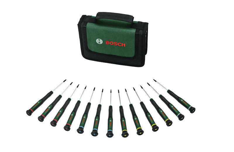 Handwerkzeuge Präzisionsschraubendreher-Set 13-tlg. Optimale Kontrolle und schnelles Drehen mit dem hochwertigen 13-teiligen Präzisionsschraubendreher-Set. Schlankes und ergonomisches Design für optimale Präzision und Kontrolle. Erstklassige Schraubendreher aus hartem S2-Stahl für ein solides Drehmoment von mehr als 40 % über dem ISO-Standard. Schwarze, magnetische Spitze für besseren Halt beim Schrauben und höheren visuellen Kontrast. Drehkappe mit Softgrip-Beschichtung ermöglicht schnelles und einfaches Drehen. Schnelle Wahl durch Farbcodierung für Größe und Form am Handgriff und auf der Rückseite. Praktische Reißverschluss-Stofftasche zur bequemen Aufbewahrung der 13 Präzisionsschraubendreher: SL1.5, SL2.0, SL2.5, SL3.0, PH000, PH00, PH0, TX5, TX6, TX8, TX9, HEX1.5, HEX2.0. Entspricht den Normen: ISO2380, ISO8764, TMD705
