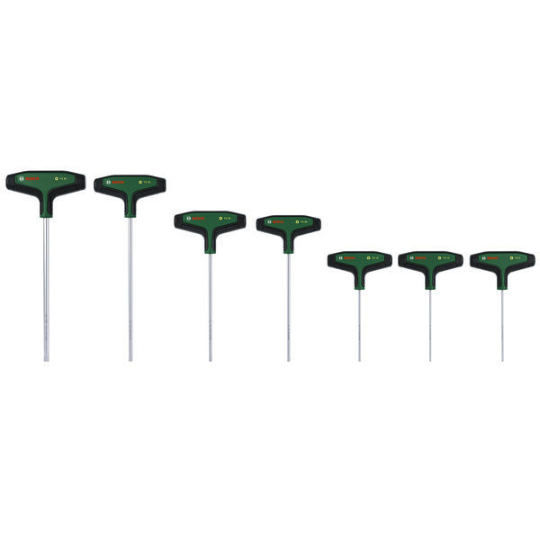 Handwerkzeuge Torx-Schraubendreher-Set mit T-Griff 7-teilig. 7-teiliges Torx-Schraubendreher-Set mit T-Griff zum Schrauben mit hohem Drehmoment. Ergonomischer T-Griff mit Softgrip für volle Kontrolle und hohe Kraftübertragung. Robuster, hochwertiger Schaft aus extrahartem S2-Stahl. Extralanger Schaft für komfortables Arbeiten an schwer erreichbaren Stellen. Angaben auf dem Griff zur leichteren Auswahl der richtigen Größe. Inklusive 7 Sechskantschraubendrehern mit T-Griff in allen gängigen Größen für Heimwerkeranwendungen. Gut organisiert in einem praktischen Metallgestell, das aufgestellt oder an der Wand montiert werden kann. 7 x Torx-Schraubendreher mit T-Griff (TX9/10/15/20/25/30/40). 1 x rack