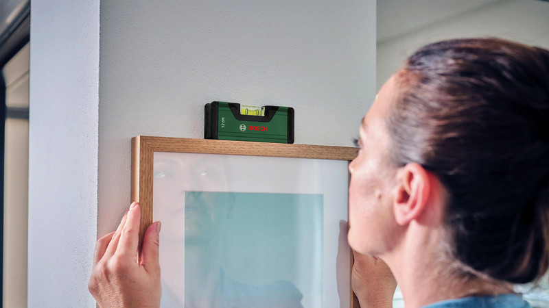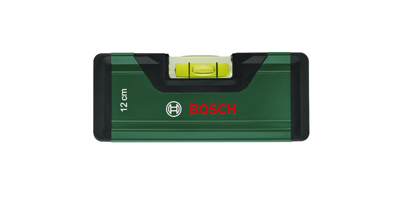 Handwerkzeuge Wasserwaage 12cm. Robuste Wasserwaage im Taschenformat für genaue Ergebnisse. Kompakte, 12 cm lange Wasserwaage für leichten Transport und Arbeiten an engen Stellen. Genaues Messen mit guter Sichtbarkeit dank fluoreszierender, horizontaler Libelle. Präzises Messen auf flachen oder geschweiften Oberflächen mit V-Nut und flachgefrästem Boden. Robuster, aber leichter Korpus aus Aluminium mit verstärkten Rippen. Weniger Schäden am Werkzeug durch Schutzendkappen mit Antirutsch-Softgrip