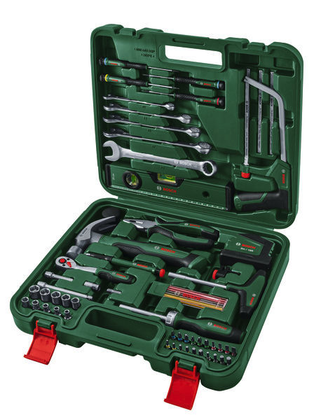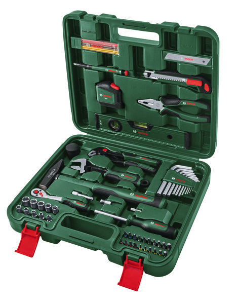 Handwerkzeuge Werkzeug-Set 73-teilig. Das hochwertige Mehrzweck-Set für verschiedene Heimwerkerprojekte. Umfangreiches 73-teiliges, gemischtes Set mit robusten Handwerkzeugen und Zubehören. Enthält mehrere Zangen, eine Ratsche, einen Bit-Schraubendreher, Schraubenschlüssel, Innensechskantschlüssel und mehr. Lange Lebensdauer dank hochwertiger Materialien und ausgezeichneter Verarbeitung. Bequeme, kraftvolle Handhabung durch ergonomisches Design. Einfach zu transportieren und zu lagern dank robustem Kunststoffkoffer mit Griff. 1 x Kombinationszange 180 mm (1 600 A03 2VB). 1 x Rollgabelschlüssel 200 mm / 8" (1 600 A03 2VF). 1 x 1/4" Ratsche (1 600 A03 2VA). 1 x Bit-Schraubendreher PH1 (1 600 A03 9HS). 1 x engineers hammer 300g (1 600 A03 2UW). 1 x weicher Stoßfänger. 1 x Maßband 3 m (1 600 A03 2UX). 1 x Cutter Messer 18 mm inkl. 3 Klingen (1 600 A03 2V8). 10 x snap-off blade SK5 steel (1 600 A03 2US). 1 x spirit level 25cm (1 600 A03 2V5). 10 x Sechskantschlüssel (1,5. 2. 2,5. 3. 4. 5. 5,5. 6. 8. 10 mm). 1 x Tieflochmarker Bleistift (1 600 A03 2V2). 10 x Steckschlüssel mit 1/4"-Antrieb (5, 5,5, 6, 7, 8, 9, 10, 11, 12, 13 mm). 1 x adapter 1/4 to HEX. 1 x 1/4" hexagonal drive bit adapter. 1 x Verlängerung mit 1/4"-Antrieb 50 mm. 20 x Bit 25 mm (PH1/2/3, PZ1/2/3, SL3/4/5/6, TX10/15/20/25/30/40, HEX3/4/5/6). 6 x Mine, mehrfarbig (1 600 A03 2UV). 1 x Aufbewahrungskoffer
