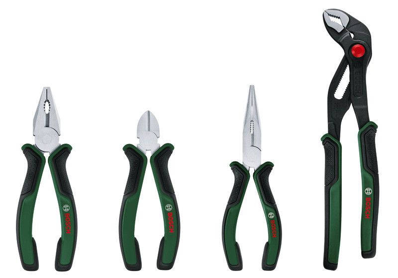 Handwerkzeuge Zangen-Set, 4-teilig. Hochwertige, sehr präzise, langlebige und robuste Zangen für Multitasking. Ausgelegt für hohe Präzision und Vielseitigkeit. Langlebige Hochqualitäts-Werkzeuge aus hartem Kohlenstoffstahl. Rostfrei dank chrom-nickel-beschichteter Oberfläche. Angenehme Handhabung durch ergonomische Innen- und Außenform. Große Softgrip-Flächen sorgen für mehr Komfort und Kontrolle. 1 x Kombinationszange. 1 x Flachrundzange. 1 x Diagonalseitenschneider. 1 x Wasserpumpenzange