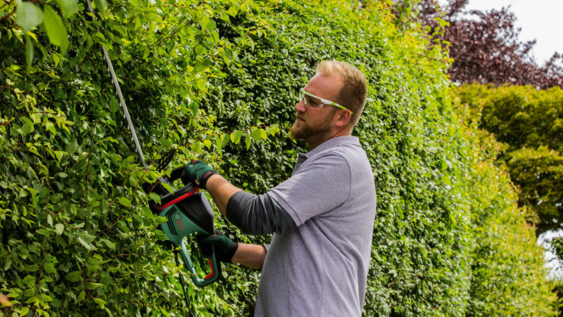 Heckenschere AdvancedHedgeCut 70. Der leistungsstarke Trimmer für große Hecken mit bis zu 80 % niedrigerem Geräuschpegel. ProSilence ermöglicht eine kraftvolle Leistung mit 80 % Geräuschdämpfung auf 93 dB(A). Messerlänge von 70 cm und 34 mm Zahnabstand für intensive Trimmarbeiten. Rutschkupplung mit hohem Drehmoment (5070 Nm) ermöglicht kraftvolle Schnitte durch dicke Äste. Perfekt zum Trimmen mittelgroßer bis großer Hecken. Kraftvoller 500-Watt-Motor und hohe Schneidkraft für beeindruckende Ergebnisse. Messerabdeckung. Kartonschachtel