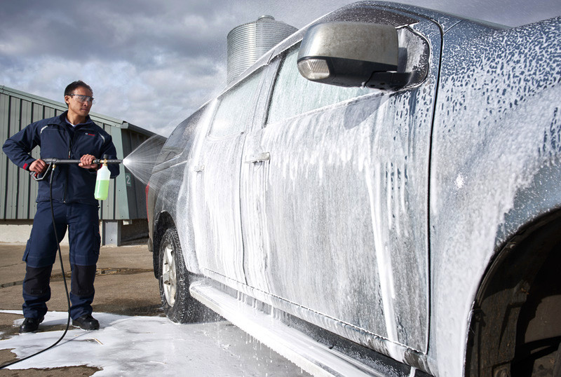 Hochdruckreiniger GHP 5-55, Kraftvoll und vielseitig: Ein kompakter und mobiler Allrounder für den täglichen Einsatz, Kompakt: Platz sparend und leicht manövrierbar durch Metall-Teleskopgriff und große Gummiräder, Bequem: Sofort aus der Verpackung einsatzbereit. Praktische Aufbewahrungmöglichkeiten für Lanze und Düsen auch während der laufenden Arbeit, Vielseitig: Sowohl stehend als auch liegend einsetzbar. Selbstansaugend, kann deshalb mit Wasser aus drucklosen Wasserquellen arbeiten, Bosch-Pistole. Verstellbare 3-in-1-Lanze (Edelstahl)