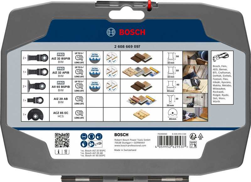 Wir haben das Holz-Set für Tischler entwickelt, die Tauchschnitte in Holz ausführen müssen. Die oszillierenden Multitool-Sägeblätter in diesem Set sind so konzipiert, dass sie alle Arten von Holz schneiden, einschließlich Hartholz, Holz mit Nägeln und Holzverbundwerkstoffe.
