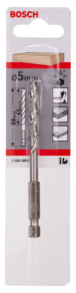 Holzspiralbohrer mit 1/4-Zoll Sechskantschaft, 5 x 52 x 99 mm