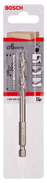 Holzspiralbohrer mit 1/4-Zoll Sechskantschaft, 6 x 63 x 106 mm