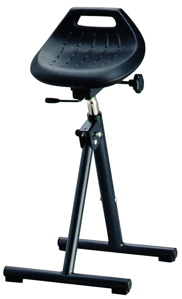 Industriestehhilfe mit Rastermechanik, Sitzfläche Integralschaum, klappbar, Sitz Höhe 650-850 mm