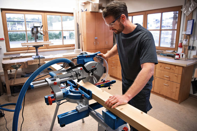 Kapp- und Gehrungssäge GCM 305-254 D, Mit ihrem kraftvollen Motor bietet die GCM 305-254 D Professional ausreichend Schnittleistung sogar für anspruchsvolle Schnitte. Die mobile Kapp- und Gehrungssäge verfügt über abnehmbare Werkstückauflagen und lange Tischverlängerungen für müheloses Schneiden langer Materialstücke. Mehr Komfort und Flexibilität bei anspruchsvollen Schnitten werden durch ihre beidseitige Neigungseinstellung mit ergonomischem Drehschalter für die Neigungsverriegelung gewährleistet. Querschnitte, Gehrungsschnitte und Neigungsschnitte in Holz, Aluminium und PVC-Kunststoff lassen sich mit der GCM 305?254 D Professional perfekt ausführen. Die Kapp- und Gehrungssäge ist kompatibel mit allen Bosch Saugern, GTA-Arbeitstischen und Sägeblättern für kabelgebundene Kapp- und Gehrungssägen. Die mobile Kapp- und Gehrungssäge bietet eine höhere Präzision dank Doppellinien-Laser mit je einer Laserlinie links und rechts des Sägeblatts. Sie ist leicht und kompakt und mithilfe der verschiedenen einhändigen oder beidhändigen Trageoptionen mühelos zu transportieren. 1 x Kreissägeblatt, Standard for Wood, 254 x 30 x 2 mm, 40 (2 608 640 435). 2 x Werkstückauflage (flexibel einsteckbar) (1 609 B07 675). Staubbeutel (2 608 000 841). Klemme (1 609 B06 932)